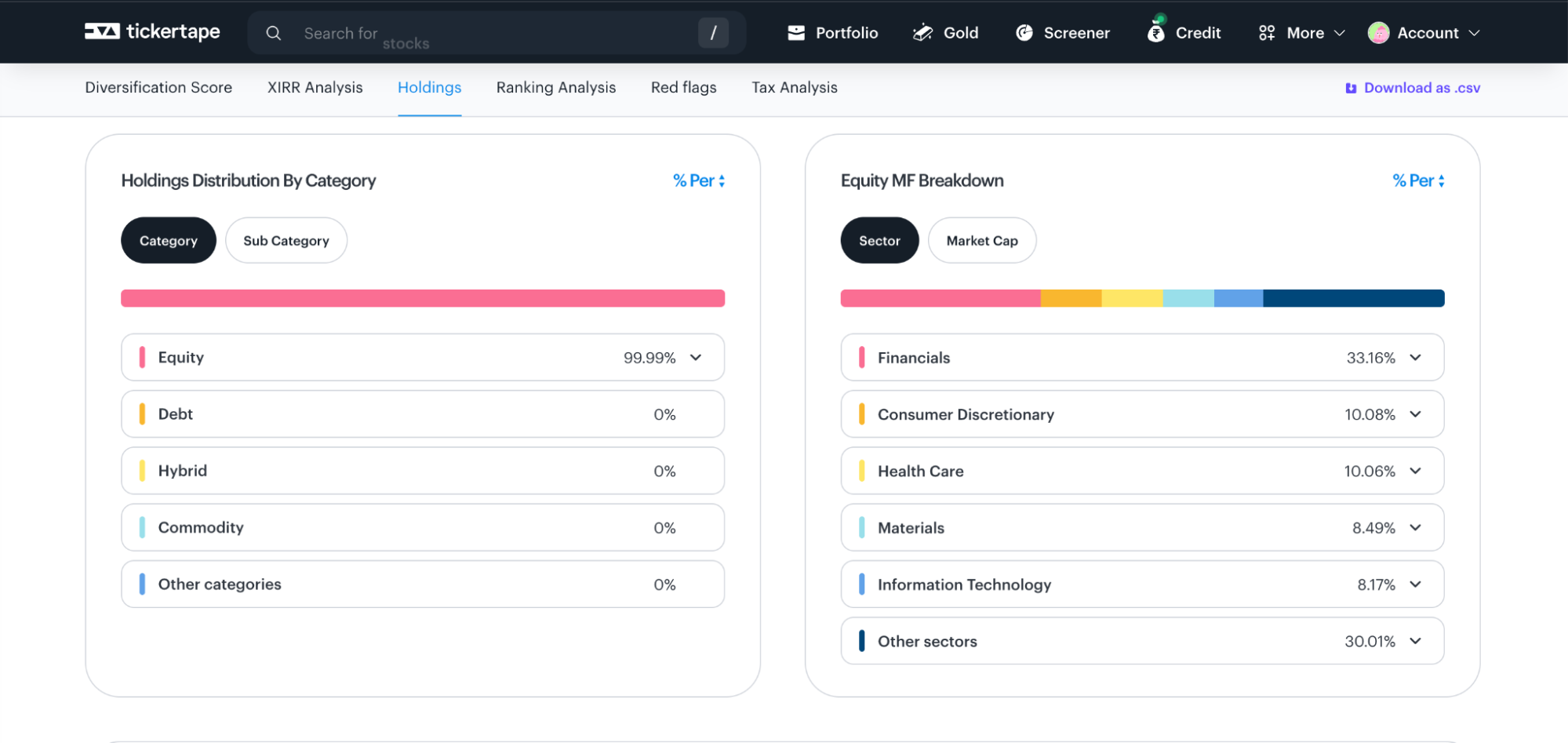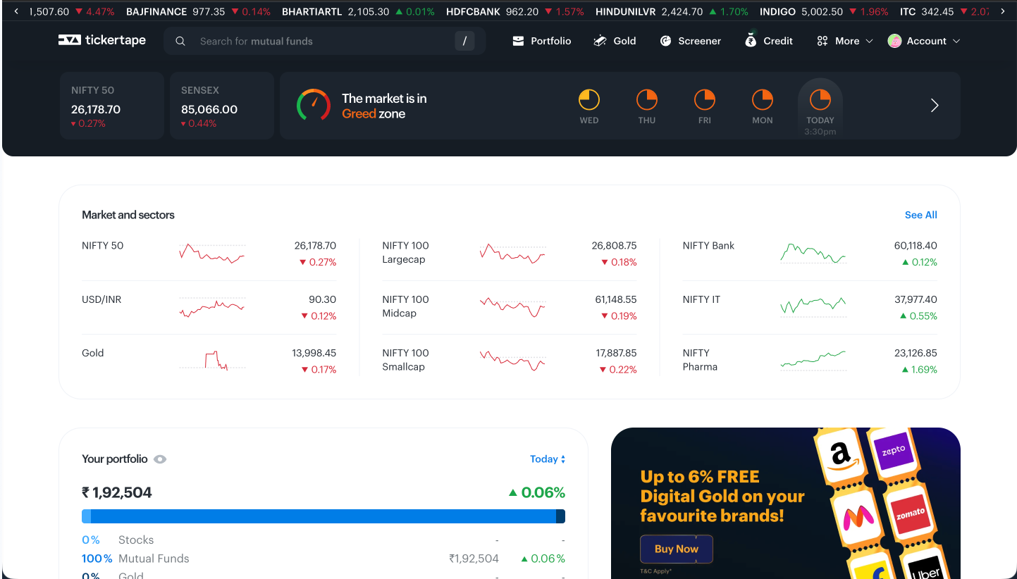 The platform is now heavily loaded with advertisements like gold loans, cash against mutual funds, and other financial products, which ends up confusing users about the tool. The basic design is decent but needs a serious upgrade in terms of prioritisation. It presents all the data without clearly indicating what matters most. A first-time user can easily feel overwhelmed about where to focus. Instead of clarity, the UI creates noise.